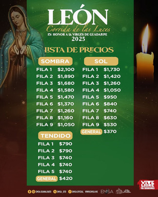 🚩 La empresa EMSA da a conocer la realización de la tradicional y emotiva “Corrida de las Luces”, que tendrá lugar el próximo 12 de diciembre, a las 20 horas, en la Plaza de Toros “La Luz”, de León, Guanajuato, en honor a la Virgen de Guadalupe, una fecha profundamente significativa para el pueblo mexicano.